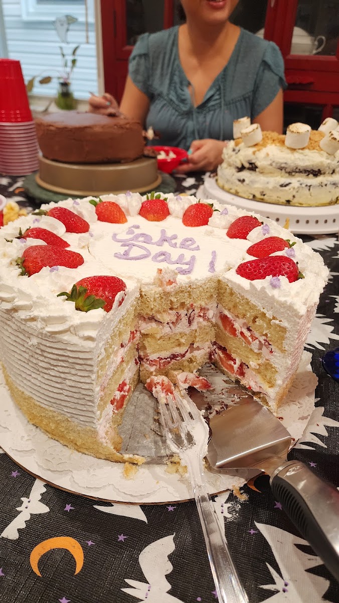 Strawberry Shortcake freshly made to order! We ordered one for Cake Day with friends and it is absolutely divine. Not too sweet and not overwhelming with cream. Perfectly balanced cake. Strawberries were fresh and the cake is not refrigerated. I ordered the cake on Thursday and tell them exactly when you will pick it up and they will have it ready for you! $65 for this 10 inch cake and totally worth it. Bring cash to pay as they are a small business. Their chocolate croissants and soft chocolate chip cookies are amazing as well. Give them a try and help keep them in the neighborhood Not meant for a sit and dine bakery, so rating for atmosphere is not applicable.